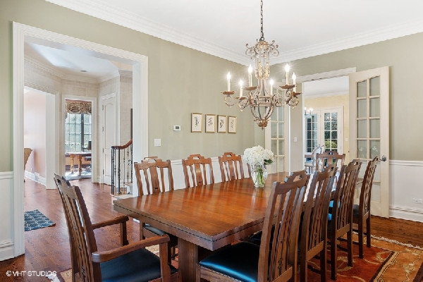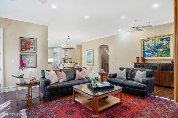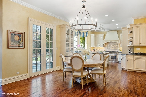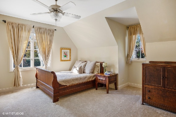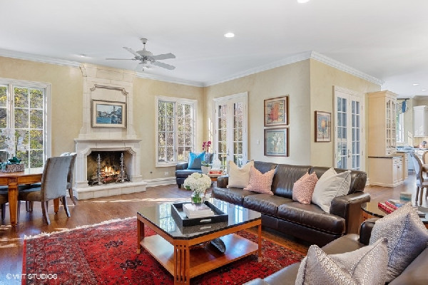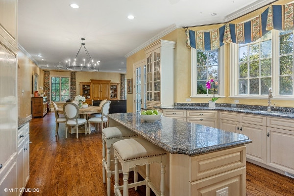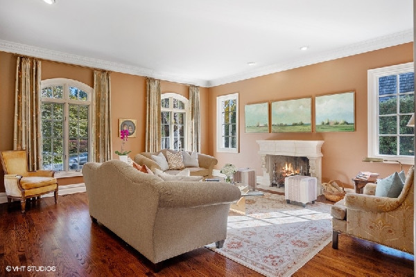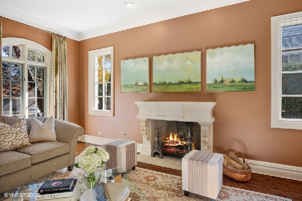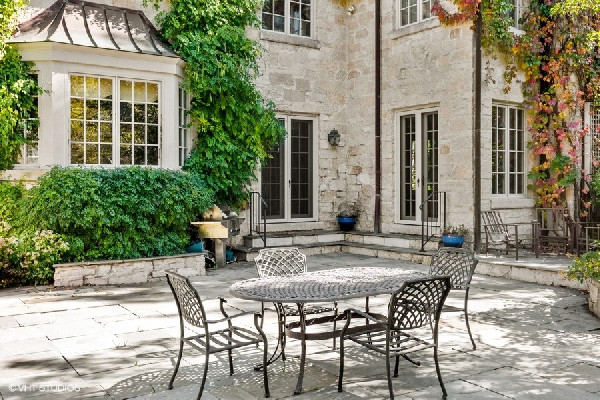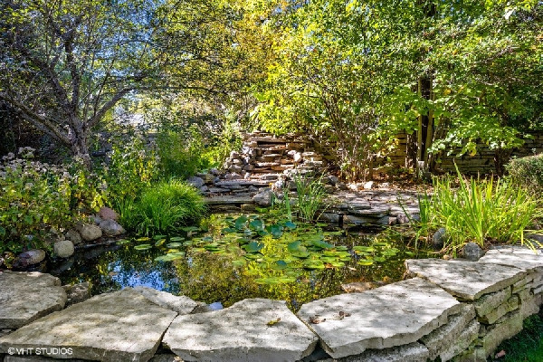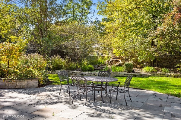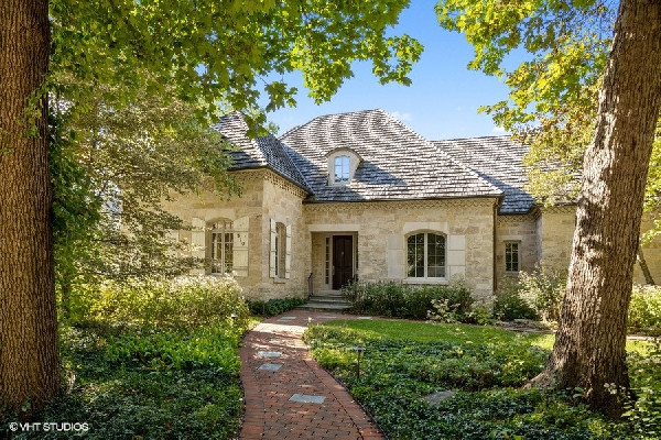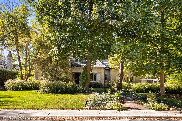 Graciously set with a beautiful presence, this French country stone fine home was thoughtfully executed. Soaring ceilings, open-concept living, handsome custom paneled library and soothing sounds of a naturally tiered fountain integrated into gardeners dream backyard makes it truly special. Built to withstand the test of time as this home radiates beautiful architectural detail and warmth. The elegant foyer sets the tone with a beautiful wrought iron staircase and large cased openings to all the spacious rooms on this level. Sun drenched living room w/ large windows and stately wood burning fireplace, handsome office with custom built-ins and formal dining room that leads into the chef's kitchen. French country style kitchen with island bar seating & top of the line appliances opening up to a separate breakfast area with French doors out to the beautiful bluestone patio & backyard. Large family room w/ another FP opens to kitchen & breakfast area as well. Spacious mudroom with built-in desk space with access to the 3 car attached heated garage. Great 2nd level with 4 beds & 3 baths including a oversized primary bedroom with fireplace, spa like bathroom and huge walk in closets! 3 other family bedrooms; one w/ jack and Jill bath, and one ensuite bath. Finished lower level with recreation game room w/ wet bar, two bedrooms, full bath and huge storage room. Gardener's dream yard landscaped to perfection with rambling English gardens, soothing tiered stone waterfall & pond, pergola, and greenhouse for those who want to garden all year round! Beautiful blue stone entertaining patio and lush yard with mature perimeter privacy trees. Golden opportunity to customize a perfect floorplan and solid construction that cant be built today for this price, all privately set between Sheridan Road and Lake Michigan with beach rights!