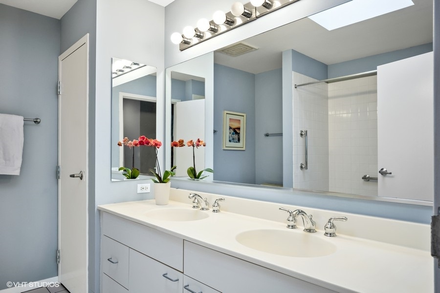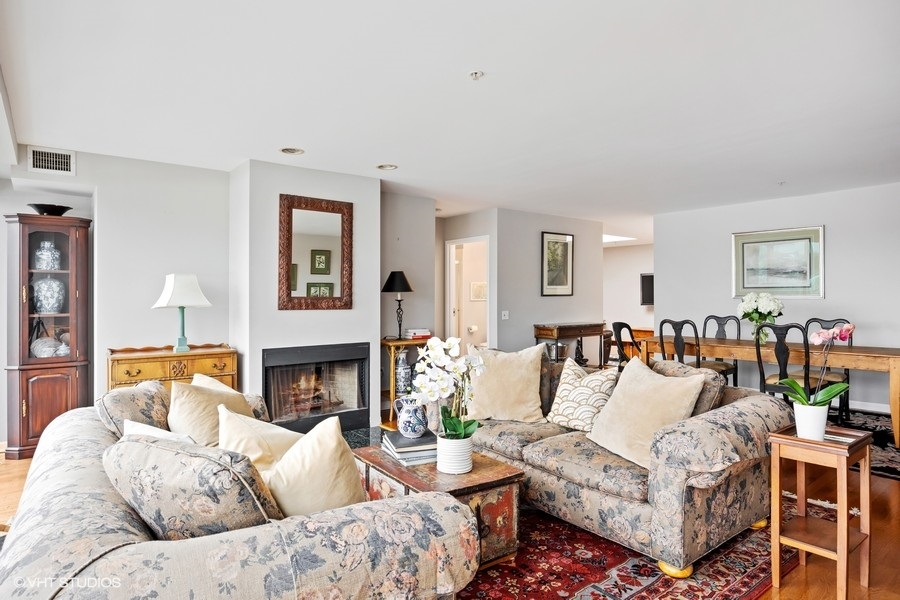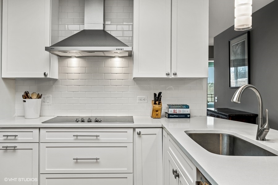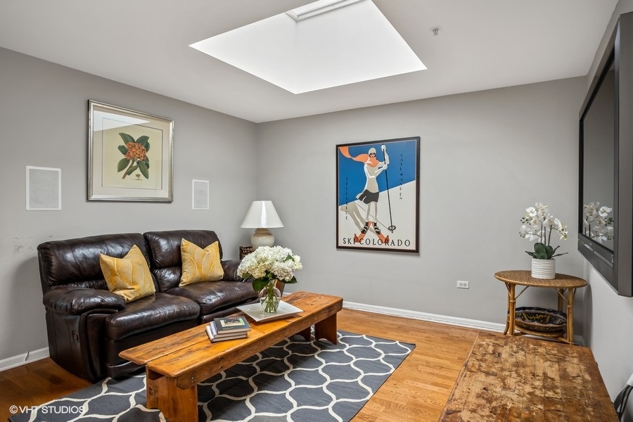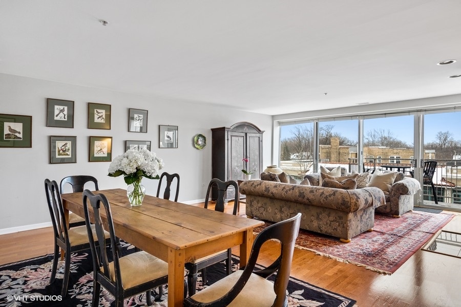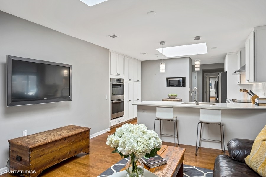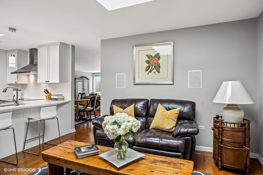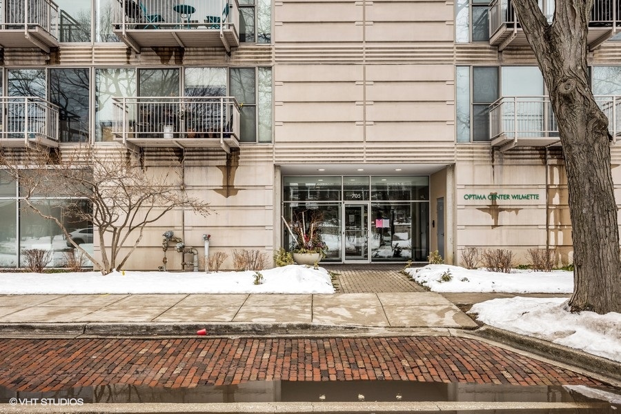 IN-TOWN Wilmette penthouse ELEVATOR building with 2 heated parking spots!! Do not miss this rare southern facing 2 bedroom / 2 bath 1,700 sq. ft unit in the sought after Optima in the Heart of Wilmette. Amazing natural light throughout this sun-drenched unit with two large skylights since it is top floor creating a fabulous feeling. Hardwood floors throughout all of the main living spaces and best of all, a renovated white custom chef's kitchen with quartz counters and breakfast bar seating opening up to the family room. Awesome and oversized great room with a combined dining and living room. Ideal split bedroom floor plan with large master suite with a wall of closets, walk-in closet, and bathroom with double sinks. Second bedroom or office with another full bath! South facing balcony with room for a table and chairs to sip wine as you overlook all the action of downtown Wilmette. 2 parking spots INCLUDED in price. Last unit sold privately... so don't miss this one. Think of walking to breakfast at Hotcakes , lunch at Valley Lodge and dinner at award winning Sophia Steak. This is the best in-town condo living in everyday. Love the convenience, heated garage spots and space in this A+ condo building! Can rent unit with board approval and ONE dog allowed up to 40 lbs. Cats allowed too.